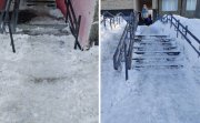 Чуть не задело младенца: у детской поликлиники в Апатитах на родителей рухнула ледяная глыба