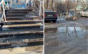 «Лестница превратилась в водопад»: на Героев-Североморцев в Мурманске вода стекает прямо по ступенькам