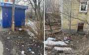 «Прямо под окнами УК»: в Мурманске путь к детской поликлинике на Полярных Зорях завален мусором