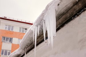 «Не лает, не кусает, а сбить не пускает»: в Мурманске авто возле дома мешает УК убрать с крыши огромную сосульку