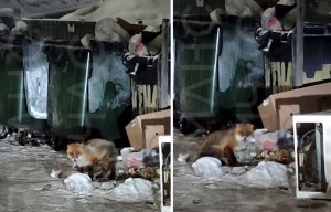 «Скоро волков гонять будем»: на заваленную мусором контейнерную площадку в Мурманске пришла «за добычей» лиса