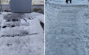 «Из подъезда можно выезжать на коньках»: жильцы дома по ул. Фролова в Мурманске два месяца не видели дворника
