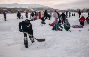 Конь, крепость и снежная горка: жители Мончегорска вышли на озеро и «объединили» лопаты
