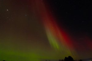 Красно-зеленое небо над Хибинами: в Апатитах засняли редкое разноцветное сияние