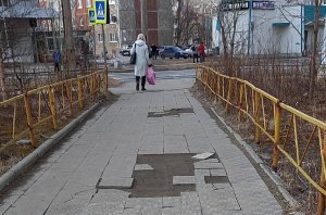 «Под ногами скользят»: в Мончегорске на Климентьева шатается и разваливается тротуарная плитка