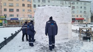 В центре Мончегорска из снежного куба вырезают лошадь — символ 2026 года