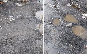Ремонт «в лужу»: на Достоевского в Мурманске ямы во дворе засыпали асфальтовой крошкой