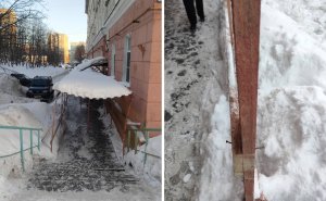 Чуть не задело младенца: у детской поликлиники в Апатитах на родителей рухнула ледяная глыба