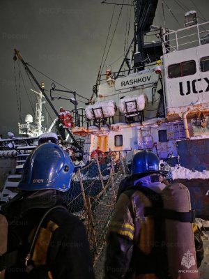 В Мурманске на тушение горящего траулера-краболова у пожарных ушло 1,5 часа