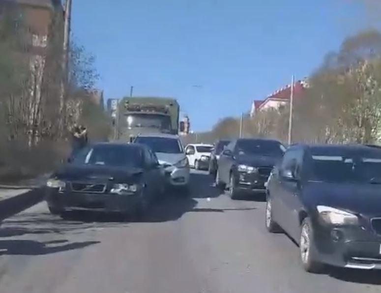 В Мурманске на «ленинградке» в районе ул. Шабалина аварии собрали 10 машин — образовалась большая пробка