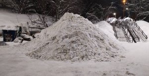 В Мурманске коммунальщики вместо вывоза снега «построили» огромную пирамиду