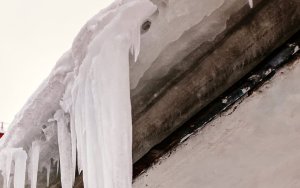 «Смотрите в небо»: в посёлке Сафоново проблему наледи на крыше «решили» сигнальной лентой