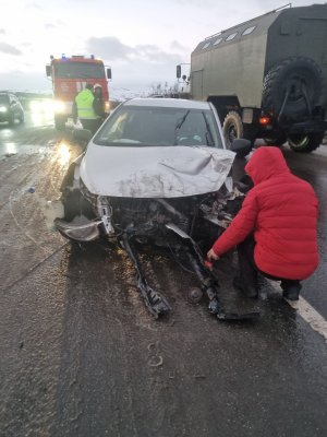 В районе старого КПП на дороге между Мурманском и Североморском легковушка врезалась в бок внедорожнику