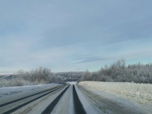 В Мурманске фура перекрыла «Ленинградку», оставив одну полосу для проезда