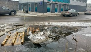 В Коле собака едва не утонула в «бездонной» луже: прохожий спас животное, провалившись по грудь в яму