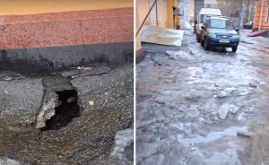 «Все течет в дыру»: на Карла Маркса в Мурманске талые воды через отмостку заливают подвал