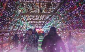 В Мурманске возле елки-шатра заискрилось «звездное небо»