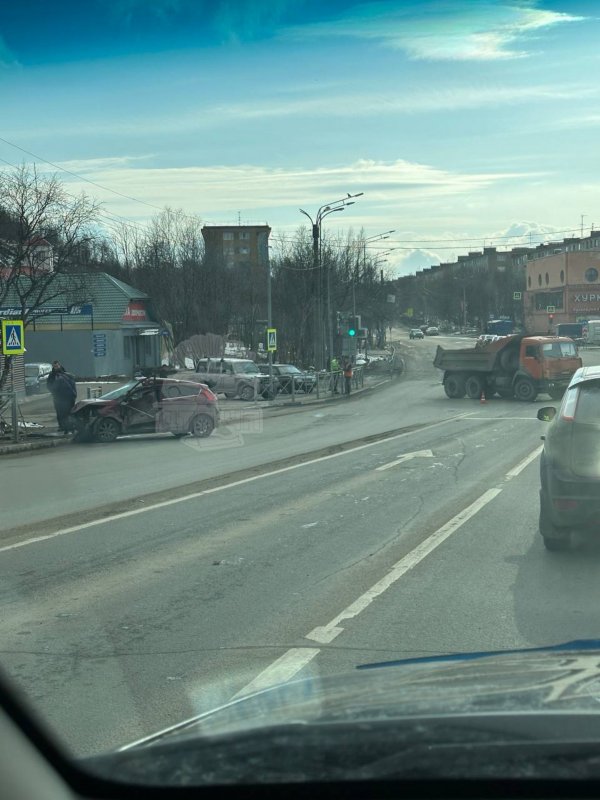Легковой автомобиль столкнулся с КАМАЗом. Грузовик перегородил одну часть дороги, а иномарку откинуло на ограждение. Легковушка получила серьезные повреждения. На месте происшествия работали спасатели и пожарные.
