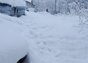 В Александровске дворник детского сада вырезает из снега кирпичи, а малыши строят из них замки