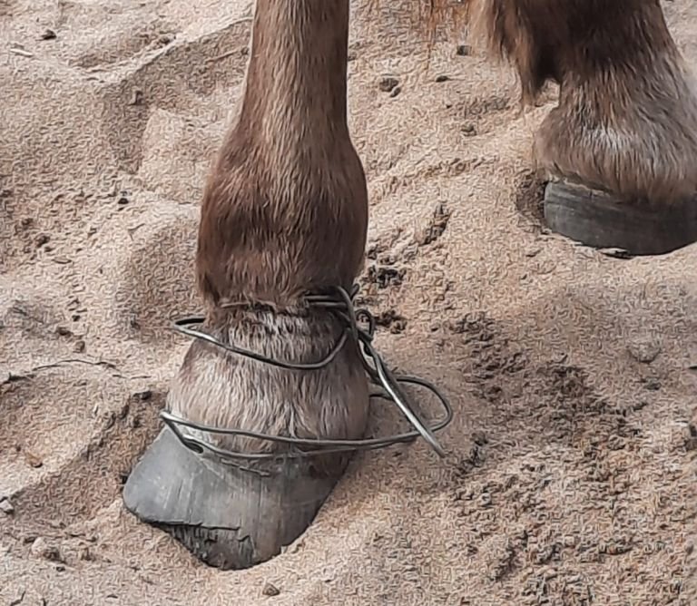 В последние годы лошадей подкармливают и заботятся о них местные активисты. Помогают и другие неравнодушные люди, даже из других регионов. Недавно один из жеребцов попал в неприятную и угрожающую для его жизни ситуацию. На правую тазовую конечность лошади намоталась проволока, которая затягивалась удавкой в районе путового сустава. Все это могло привести к некрозу тканей, гангрене ноги и смерти.