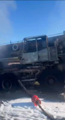 Прошедшим вечером серьезный пожар вспыхнул на трассе рядом с Минькино. Недалеко от Мурманска на обочине дороги загорелся кран стрелочного типа.