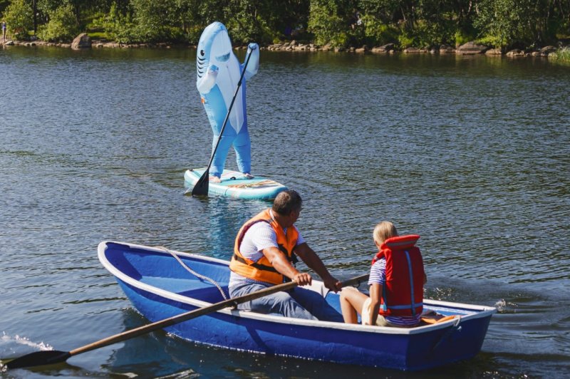 Правда, это был человек, одетый в костюм этой рыбы. Короткий мастер-класс по сапбордингу прошел на Семеновском озере.