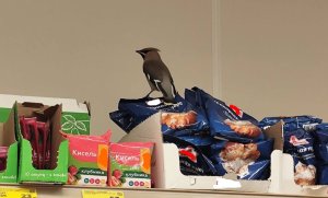Мурманская свиристель сменила рябину на супермаркет: птицу-сладкоежку засняли в отделе бакалеи
