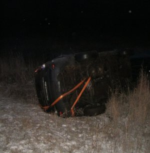 С трассы под Полярными Зорями вылетела в кювет и перевернулась фура
