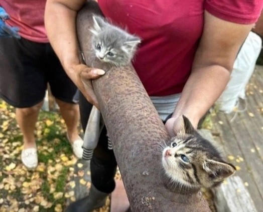 Сотрудники экстренной службы аккуратно распилили трубу и, используя растительное масло, извлекли из нее зверей. Котята не пострадали и, вероятно, уже обрели новых хозяев.