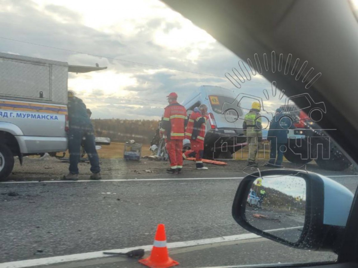 Сегодня утром на участке трассы, которая пролегает между Тремя Ручьями и Абрам-Мысом, произошла серьезная авария. Как сообщается в мурманских социальных сетях, столкнулись микроавтобус и автокран.