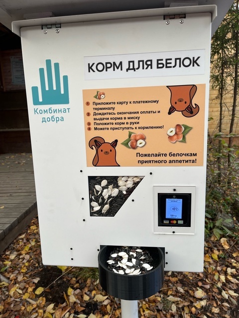 Так называемый «белкомат» установили в городском парке Мончегорска. Аппарат похож на банкомат. Предназначен для выдачи беличьего корма. С помощью этого оборудования можно купить лакомство для лесных зверьков.
