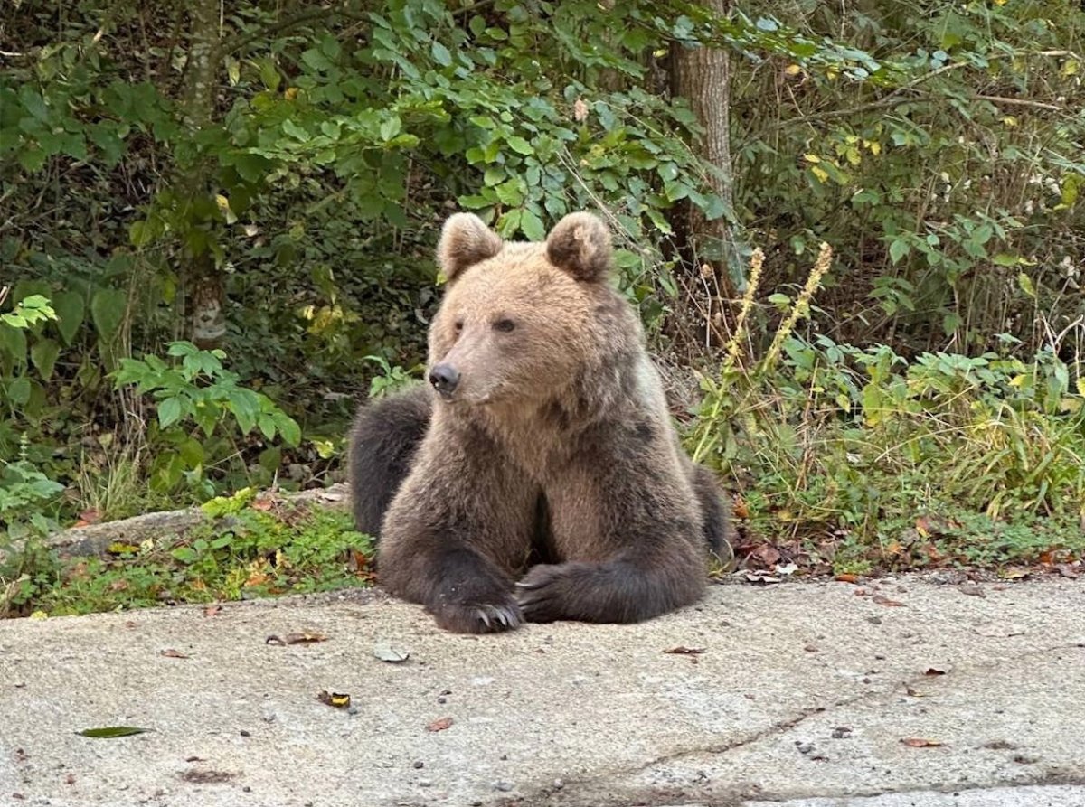 В Апатитах кладбищенского медведя не испугал даже гудок машины