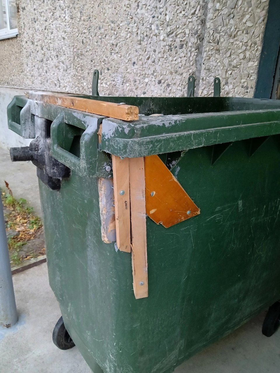 Старыми палками «починили» мусорные контейнеры в Мончегорске