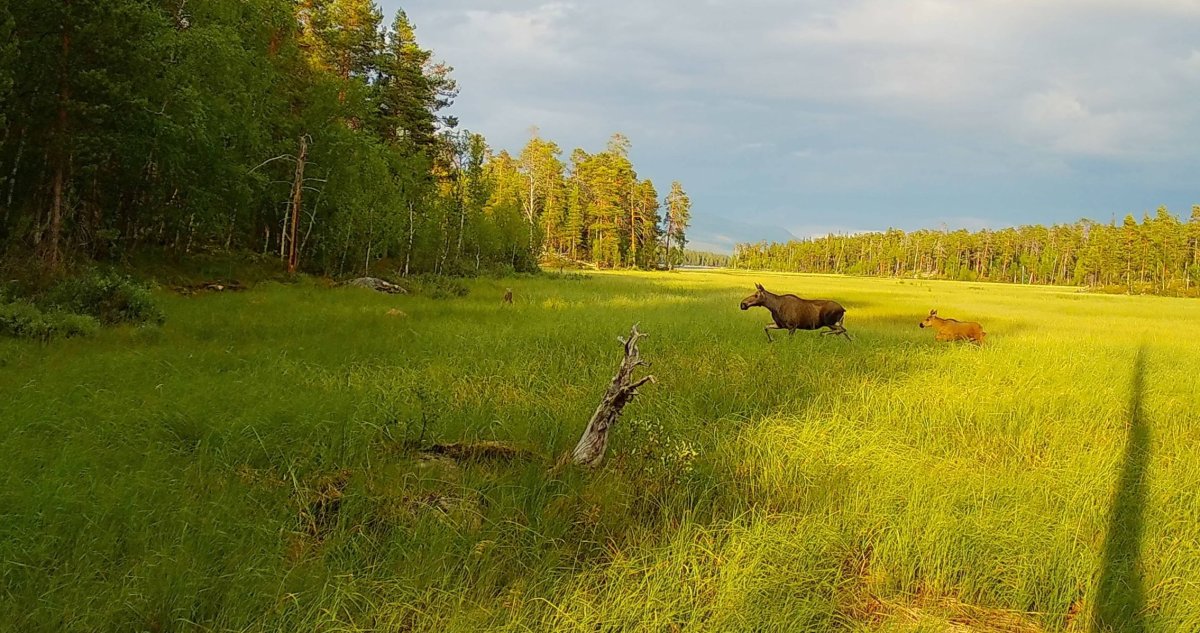 Редкий материал из мира лосей региона стал доступен в группе «Лапландского заповедника « Вконтакте». Интересна в видео не картинка, так как на кадрах видно только очертания сохатых, а звук. Фотоловушка запечатлела на заповедной территории семейств лосей.