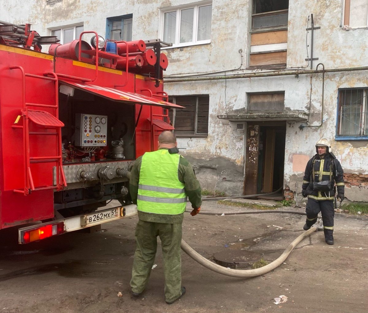 9 огнеборцев и 2 единицы техники работали сегодня на Подстаницкого, 6 в Мурманске. Там находится общежитие. В одной из комнат пятиэтажки случился пожар.