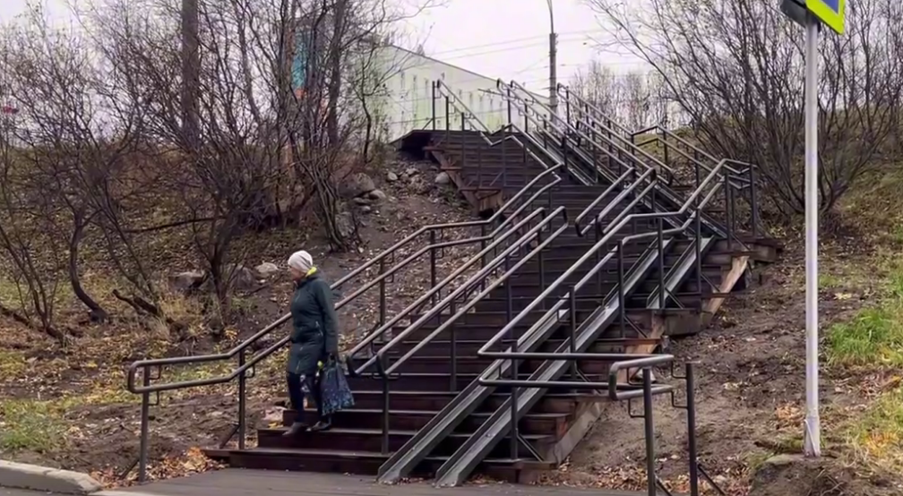 В Мурманске вместо лестницы-развалюхи появилась новая с пандусами