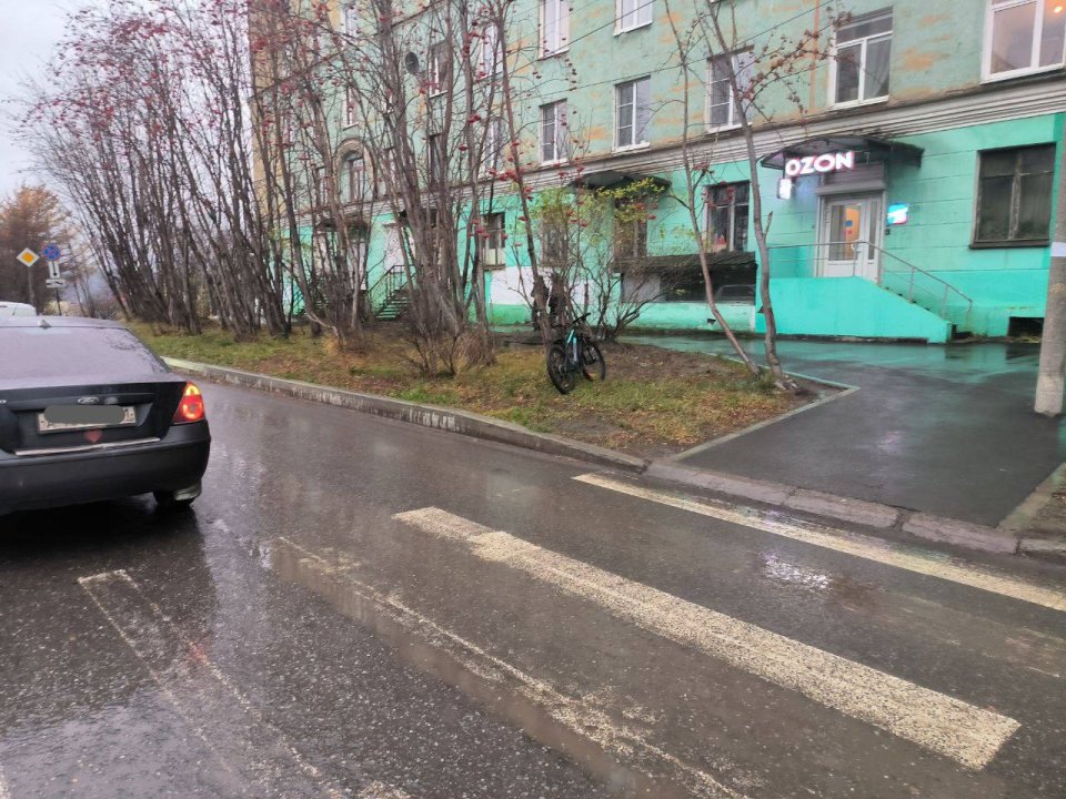 В Мурманске мальчик решил проехать «зебру» на велосипеде и попал под колеса машины