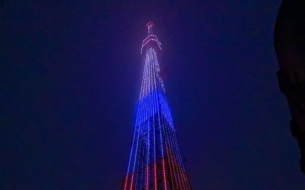 На медиафасаде Останкинской телебашни появятся изображение памятника Минину и Пожарскому, Храма Василия Блаженного и Московского Кремля, развевающегося флага России.