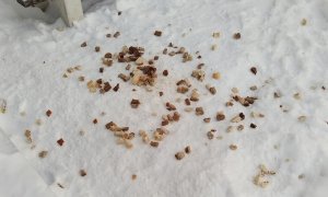 «Плесневелые сухари и остатки торта»: в мончегорском сквере раскидали вредные для птиц и зверей «угощения»