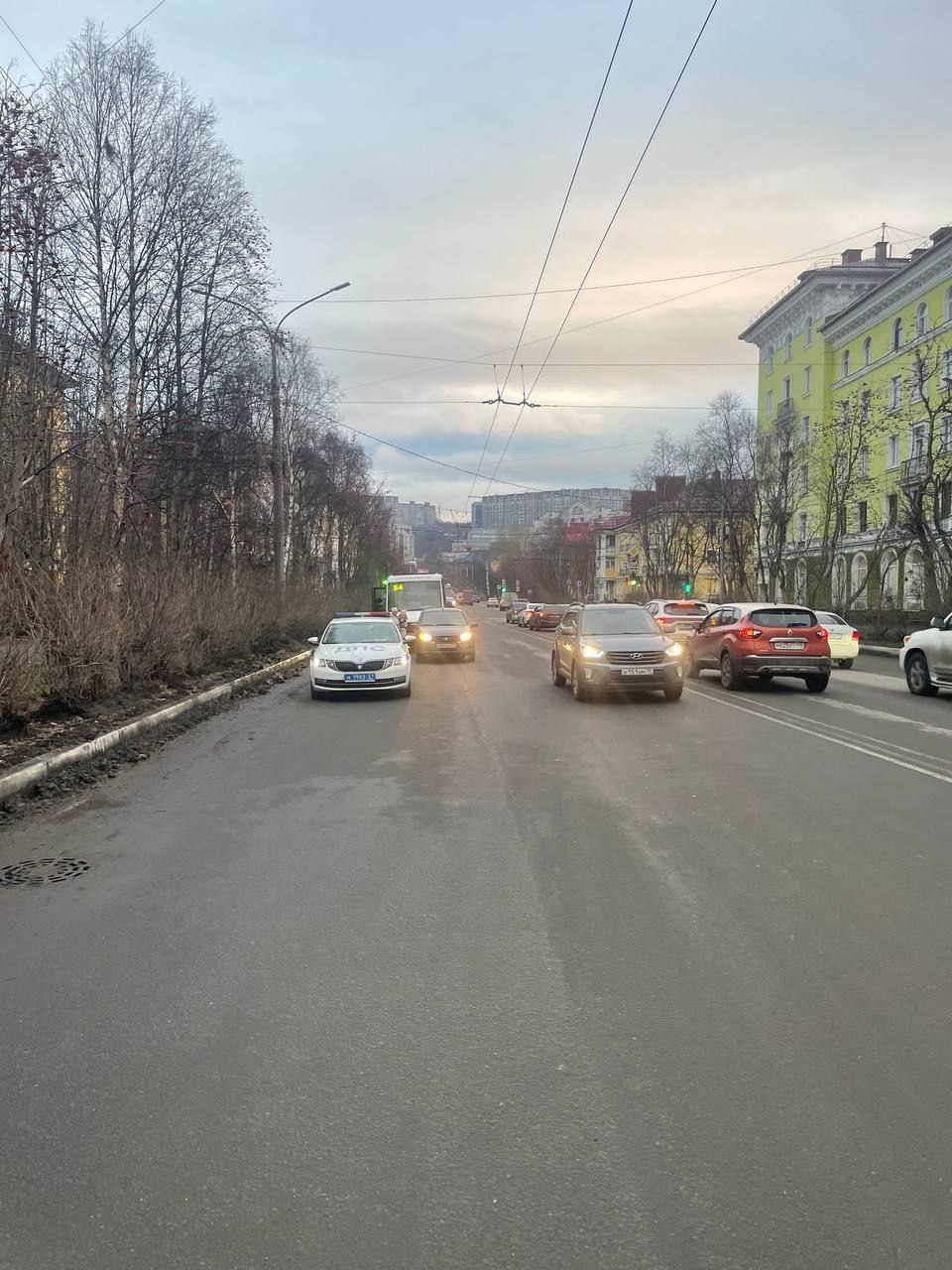 Около полудня в понедельник в центре Мурманска произошло ДТП с участием общественного транспорта. На Челюскинцев водитель маршрутки, двигаясь со стороны Карла Либкнехта в направление Октябрьской, неправильно выбрал безопасную дистанцию до впереди движущегося автомобиля.