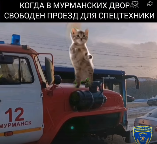 На кадрах изображено, как на пожарной машине под музыку танцует котенок, а вверху надпись: «Когда в мурманских дворах свободен проезд для спецтехники». В комментариях к публикации северяне идею поддержали и прислали фото, на котором видно, как иномарка помешала проехать во двор пожарной машине. Снимок отправил кандалакшанин.