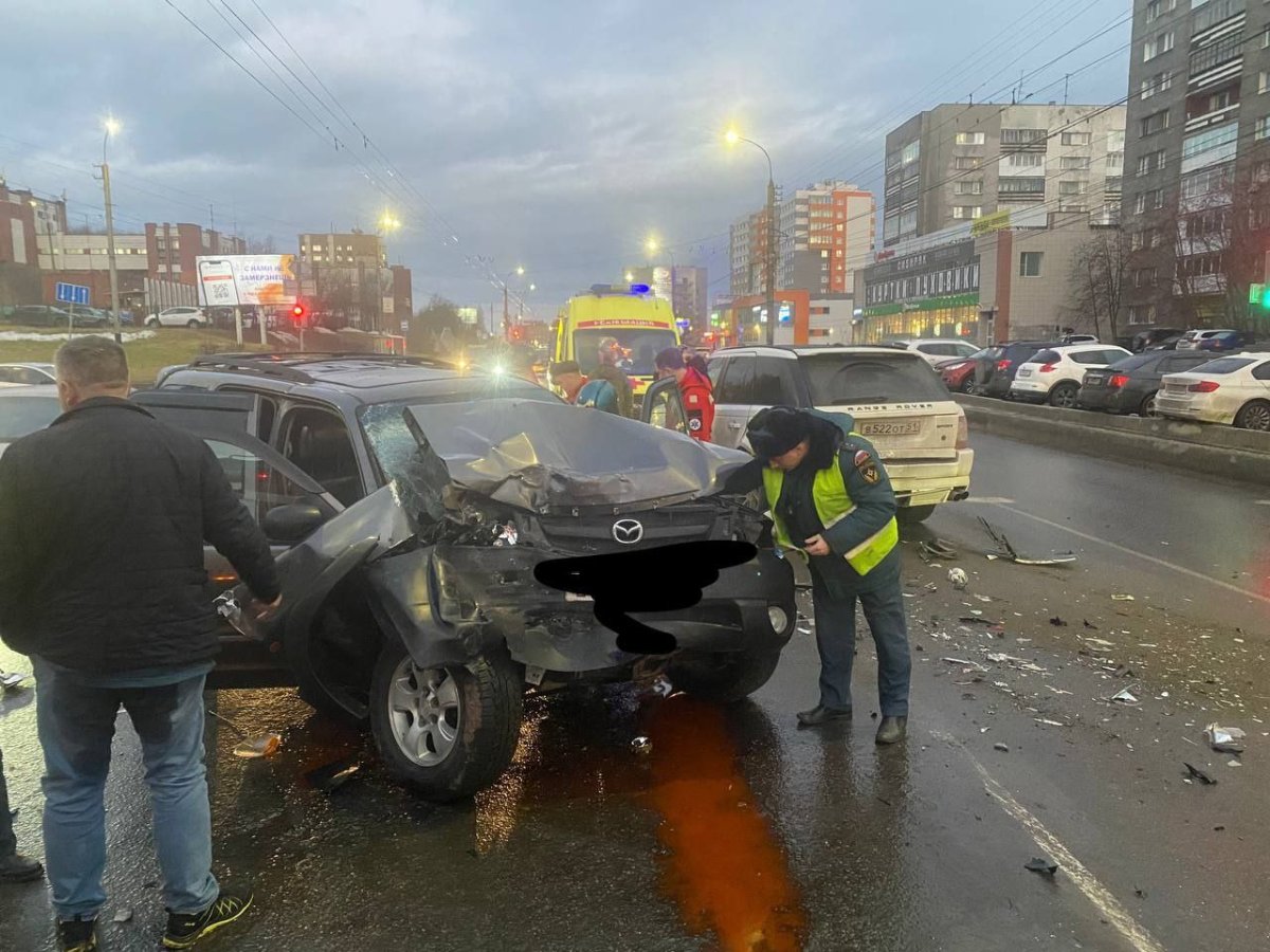 По предварительной информации, на дороге столкнулись три транспортных средства: автомобили Volkswagen, Range Rover и Mazda.