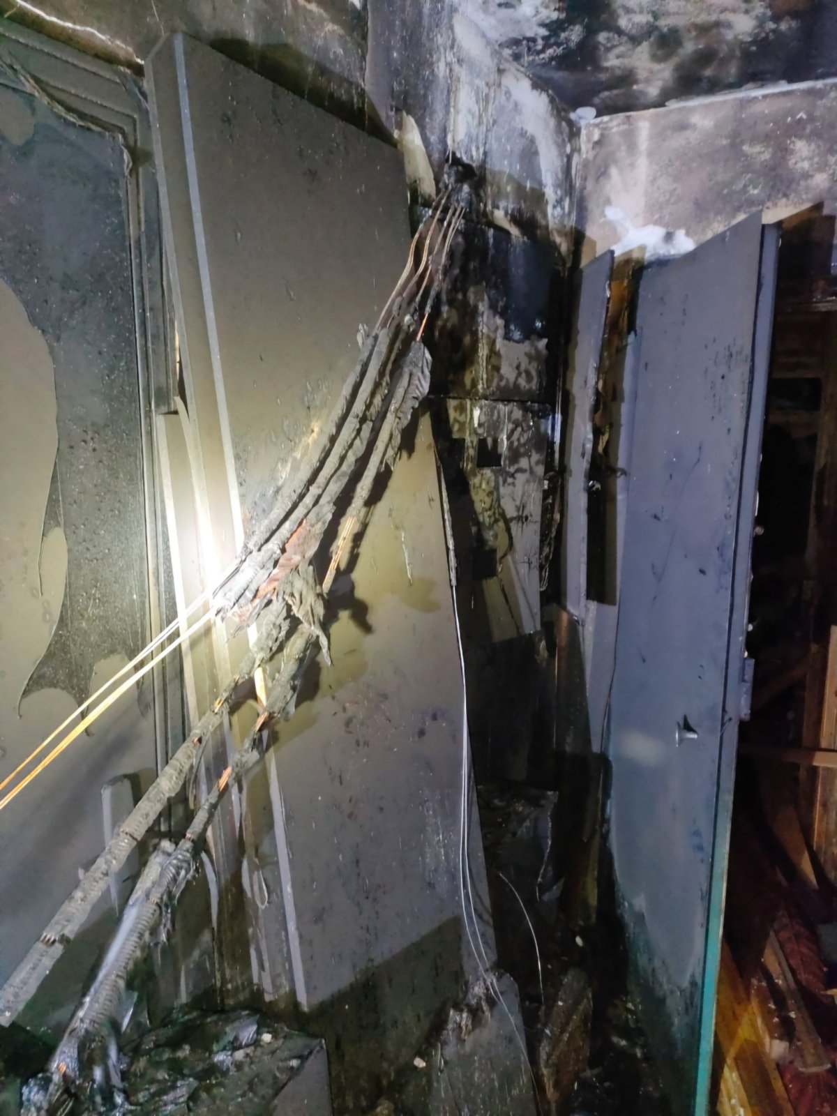 В 03:10 пожар ликвидирован. На 3 и 4 этажах по всей площади выгорели электрощиты. В тамбуре между квартирами огонь уничтожил вещи жильцов. Проходное помещение закопчено по всей площади.