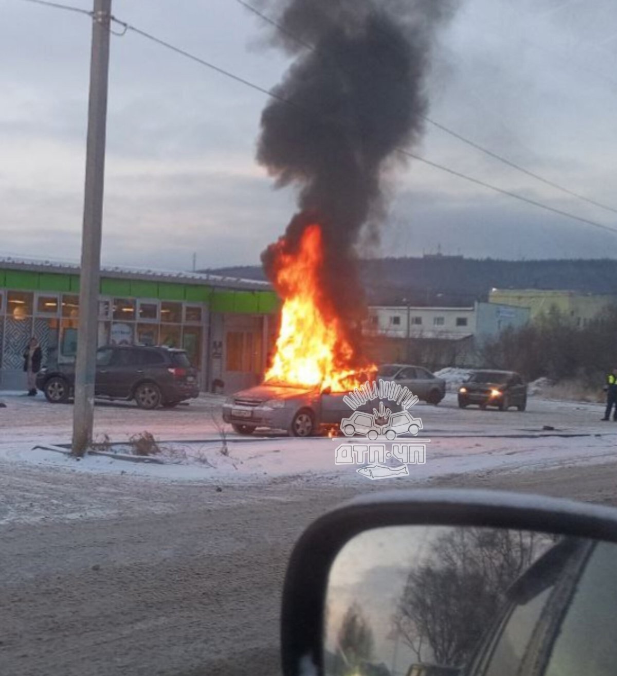 Об этом сообщает группа «Мурманск ДТП ЧП» в соцсети «Вконтакте». На опубликованной фотографии видно, как пламя практически полностью охватило автомобиль.