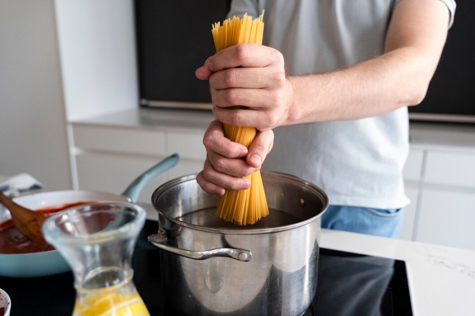 Для того, чтобы легко и просто сварить спагетти скрутите их, а затем бросьте в кастрюлю с кипящей водой.Таким образом они постепенно распрямляются и варятся равномерно.
