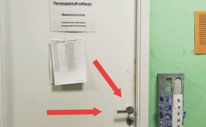 «Вставьте ручку — и входите»: в Никеле пациенты поликлиники вынуждены сами чинить дверь в процедурный