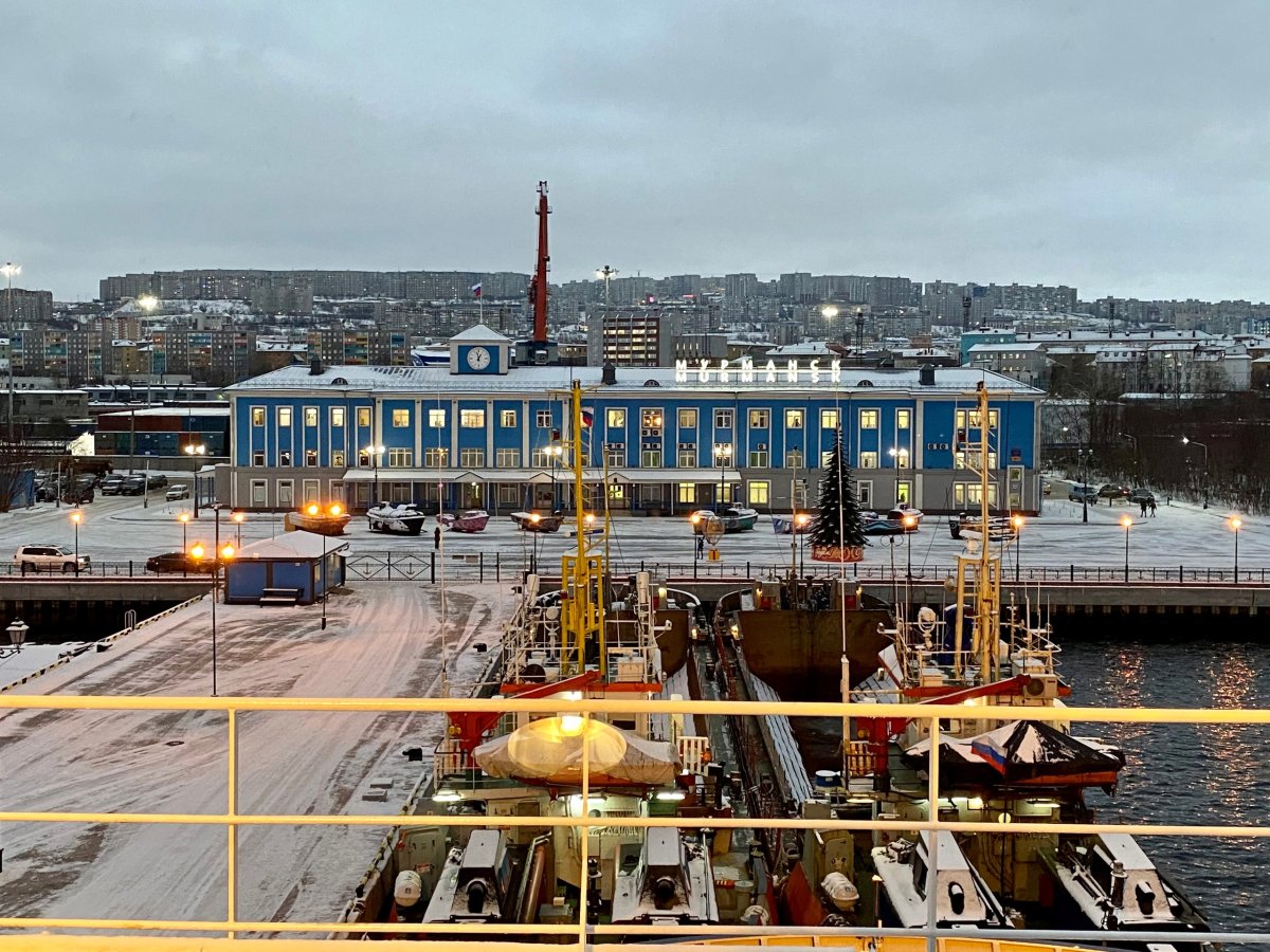 Территория возле мурманского Морвокзала уже подготовлена к Новому году. Там установили праздничные ели и различные конструкции. Уже завтра на Морвокзале будет не только ярко, но и музыкально.