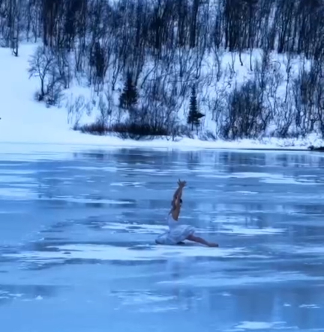На покрытом водой замерзшем озере в Хибинах танцевала балерина Мариинского театра