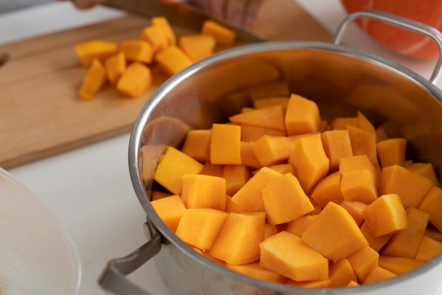 Тыква, нарезанная маленькими кусочками, быстрее не сварится, она получится водянистой. Измельченная тыква лишается крахмала, плотной текстуры и вкуса. И чем мельче кусочки, тем они безвкуснее.