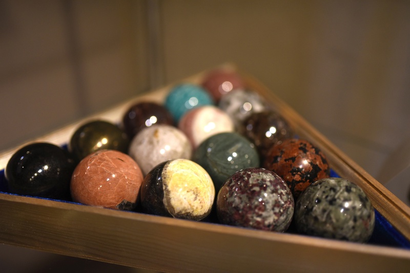 — Особого внимания заслуживают подарки от работников мастерской по обработке камня на Восточном руднике. Перед вами бильярдные шары из горных пород и минералов Кольского полуострова. Что это, если не искусство? — подчеркивают в музее.